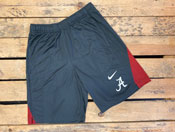 Classic Collegiate Style Lined, performance shorts Adjustable drawstring waist Side pockets Standard fit Screen-printed Crimson Tide team logo on lower left leg Swoosh design trademark screen-printed above logo Contrasting team-colored side panels Machine washable Officially licensed collegiate product