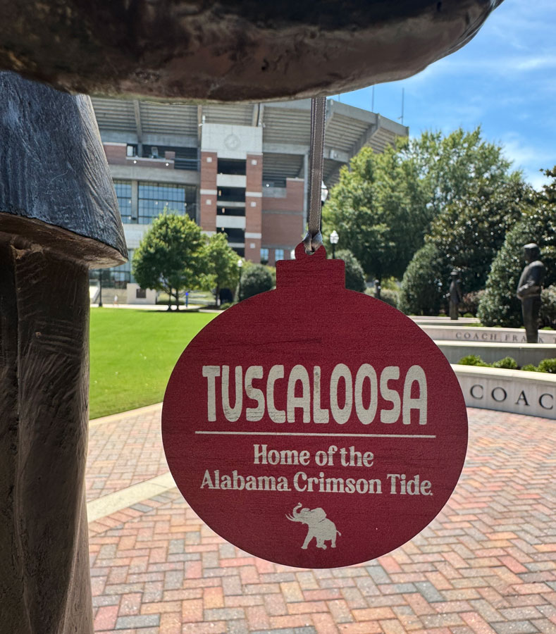 Tuscaloosa/Home of the Alabama Crimson Tide Wood Christmas Ornament