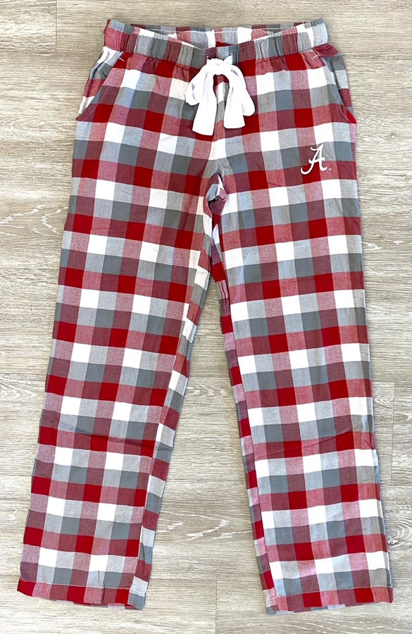 Elastic waistband with a cute satin bow Allover plaid pattern delivers classic style Soft, brushed flannel fabric made from 55% cotton and 45% rayon Team embroidery on the left leg to display your fan pride 31-inch inseam Machine wash on cold and tumble dry, do not iron embellishment Relaxed fit